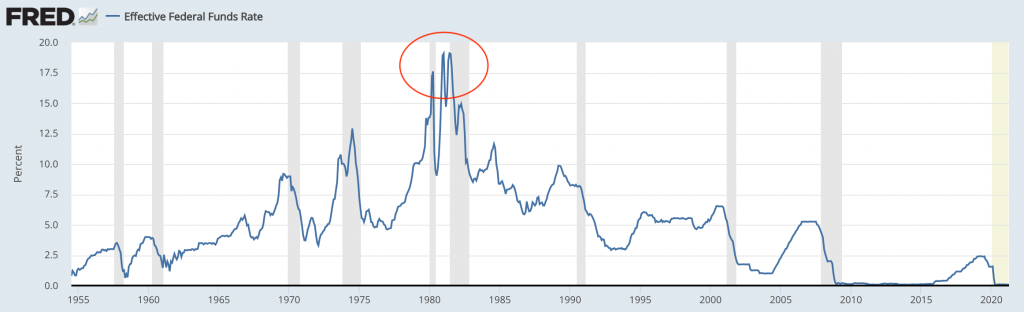 To break the inflation of the 1970s and early 1980s, Fed Chairman Paul Volcker raised nominal interest rates to nearly 20 percent.