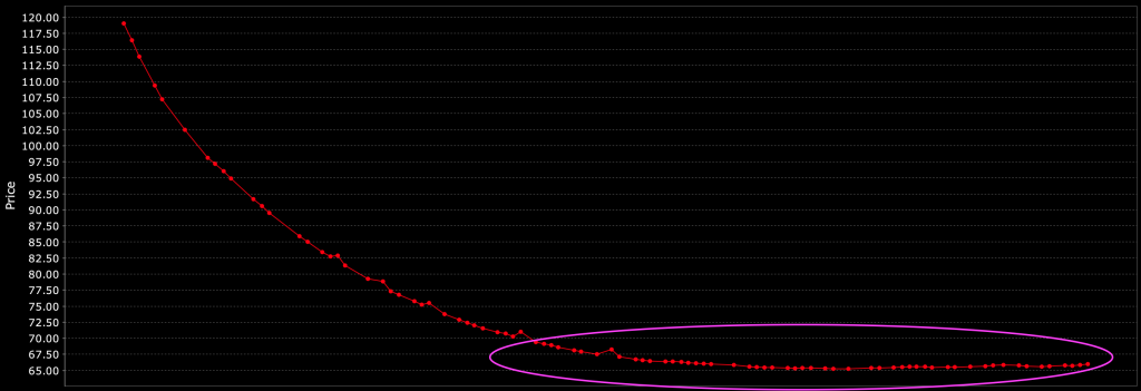 The top graph below shows the oil pricing curve through 2032. The strong red line shows the oil curve after Russia’s invasion of Ukraine. The faint red line shows where it was before the invasion.