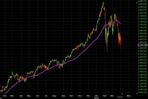 Moving VWAP tracks end-of-day VWAP calculations over time, and thus essentially forms a moving average. Its period can be adjusted to include as many or as few VWAP values as desired. Below is an image of the moving VWAP applied to a daily chart of the S&P 500 (pink line).